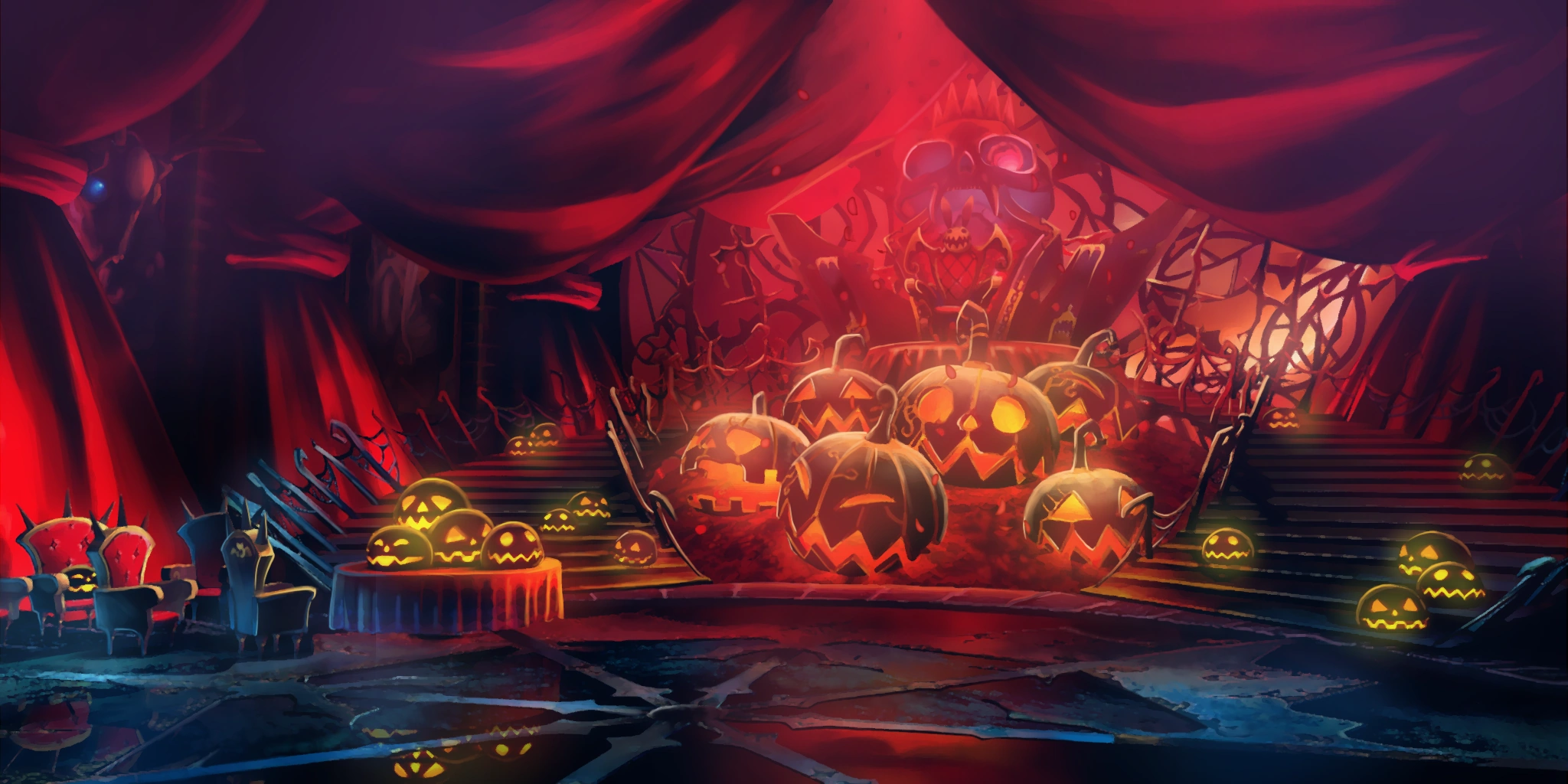 Багровый Трон — тронный зал замка Алукард. В помещении полно тыкв-светильников, а на стене висит портрет Клависа Алукард в старости.
