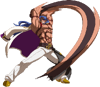 Azrael drops the enemy after grabbing them, then knocks the enemy down behind himself with a one-arm uppercut lift into an overhead throwing smash. Can be canceled.