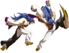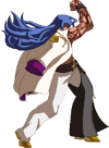 Azrael stops for a moment, then falls down with a dive kick. Knocks down on raw air hit. Like most dive kicks, it can offer a slight form of crossup depending on positioning, but not as versatile due to the delay and its speed. Landing j.2C after Hornet cause them to spin and you are able to continue the combo. Launches the opponent a bit on air hit.