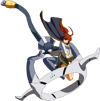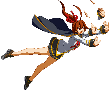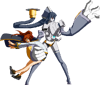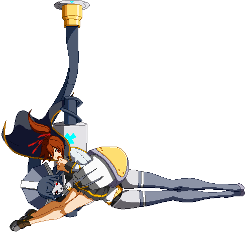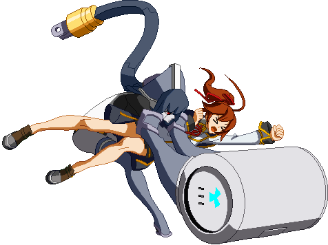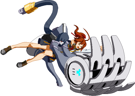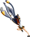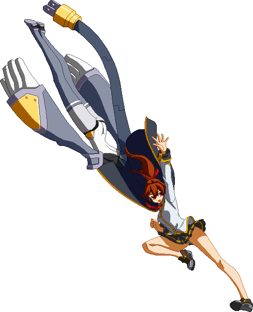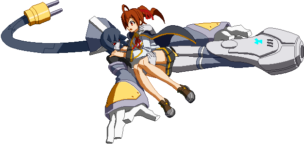 The finishing 6D. Minerva connects her plug to a socket that appears behind her, transforms her arms into plane wings, and dashes forward a bit, similar to Lance Quiche.