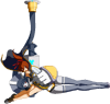 The middle 2D. Minerva connects her plug to a socket that appears right above her, plants one of her transformed arms into the ground, and swings at the opponent with her legs. Hits low.