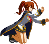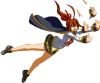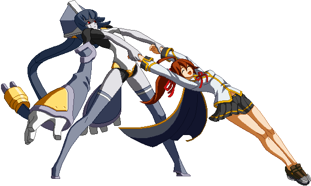 The starting 2D. Minerva holds Celica’s hands, attacking the opponent with the girl’s legs. Hits low.