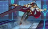 Midair stance of any of the three stances. When a followup is used from here, Kagura drops quickly to the ground to perform the attack to the pertaining stance. 1.1 allows sooner usage of stance specials during said stances for the midair version (from after 8 frames to after 5 frames). However, stance cancels can only be inputted later (from after 19 frames to after 34 frames).