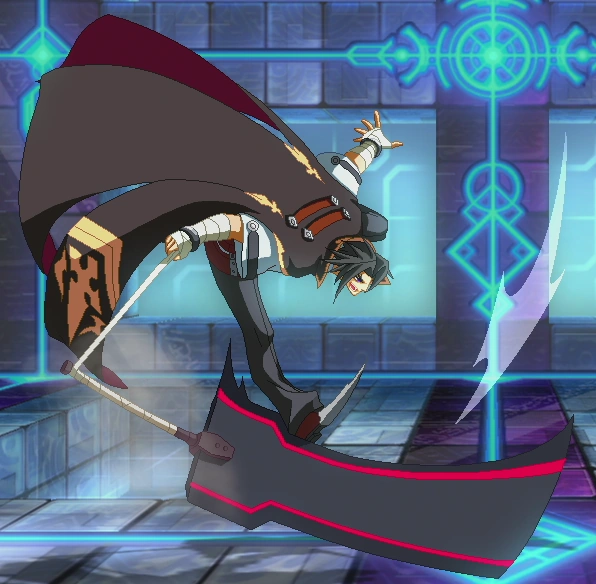 New move in Centralfiction. Kagura with dark energy swat-slashes below himself while in midair. Air combo finisher with a uniquely inverted charge motion (and causes Kagura to instantly take into the air when he performs this from the ground), and can be used as a followup input right after Ryūjinshō. Hits overhead and plummets on hit. Works as a way to get a hard knockdown on the opponent in order to setup for okizeme, though using it as a followup limits its damage quite a bit. However, using it out in the open is mainly for landing a hard read in the neutral.