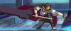 Short-ranged command grab where Kagura grabs his foe and flings him up like with his ground throw animations, then follows up with a vaulting mid-air spin kick to his opponent (via sword planted on ground). Ground bounces on second hit, and can cancel into his air stance, as well as the midair version of his Dragon Lord’s Striking Fang. In 1.1, its P2 rating changes from 60% total to 52% total. Has 100% minimum damage in Centralfiction, with both hits being cancel-able into specials.