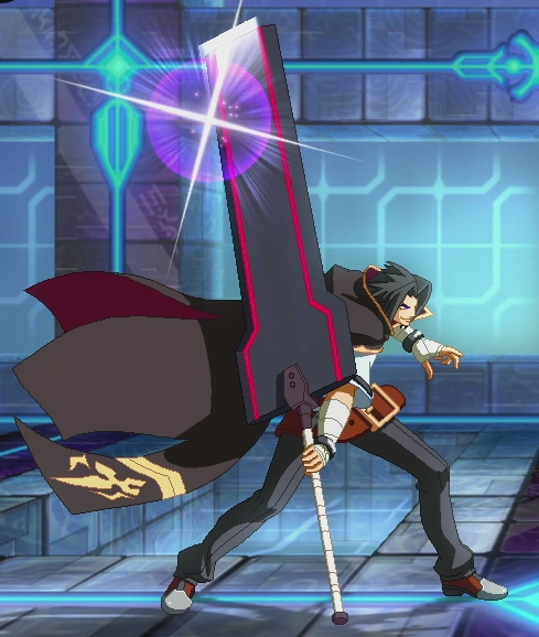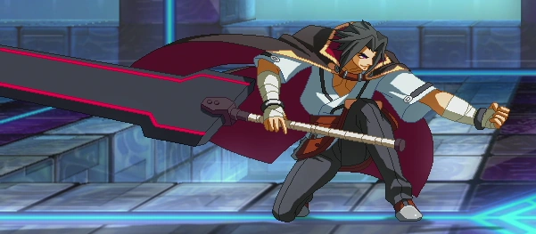 Kagura Mutsuki is a character with wide ranged-sweeping-normals and very high average damage. His Drive, Black Gale (ブラックゲイル,Burakku Geiru), allows him to transition to three different types of stances that each have three different moves that can be performed off of them, leading to a variety of combos, mixups and mindgames to be available at his disposal. His projectile and anti-air also provide some solid standard ground to work with, along with giving him a powerful wakeup offense game. With around 11,500 in total along with certain moves that grant him super armor, Kagura can also easily take a lot of punishment.