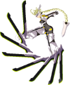 | Lambda picks up the opponent and skewers them with her blade wings. Exactly the same as Lambda’s forward throw except she throws the opponent behind her. | |||||||||||