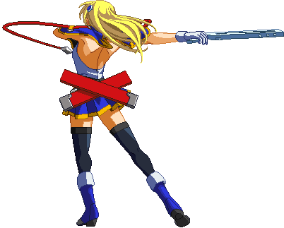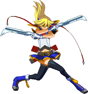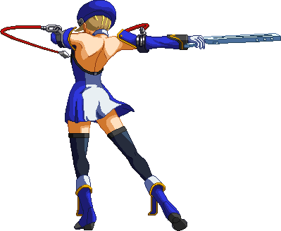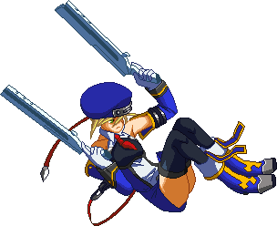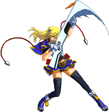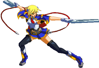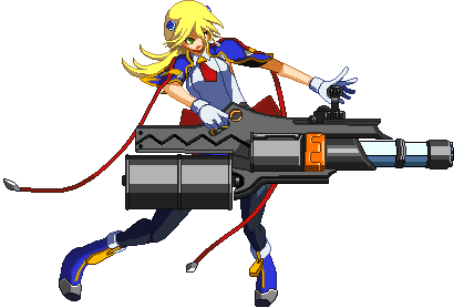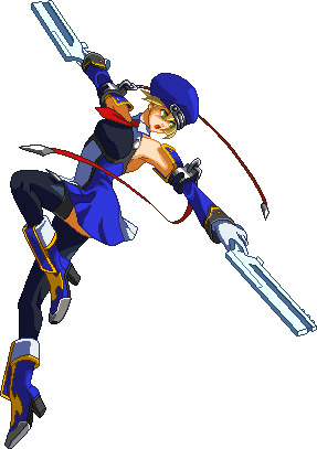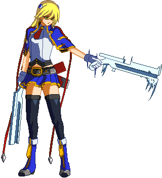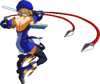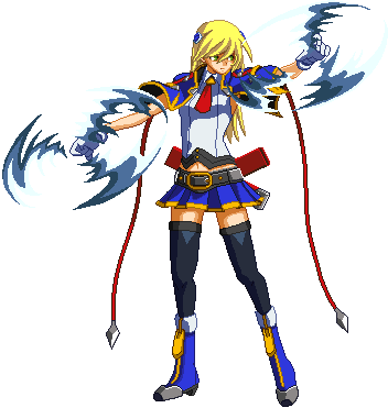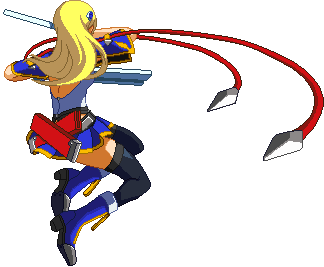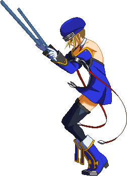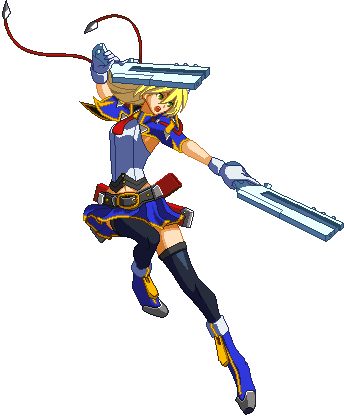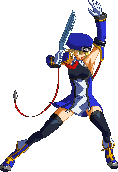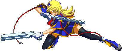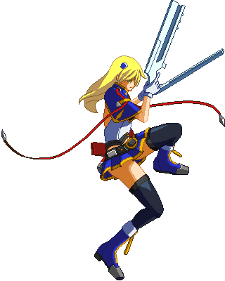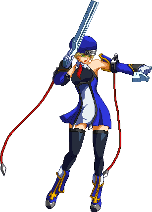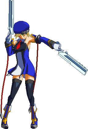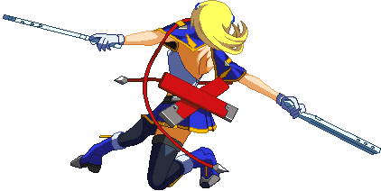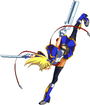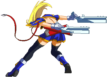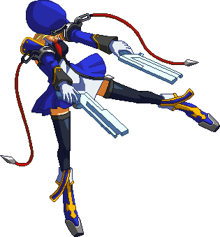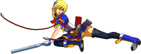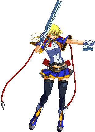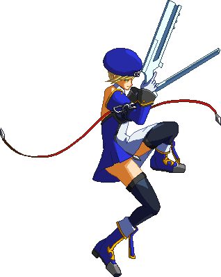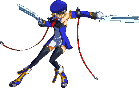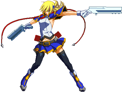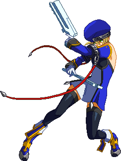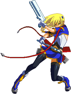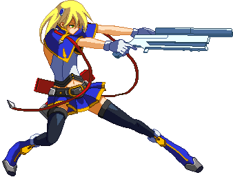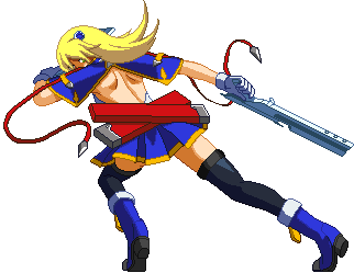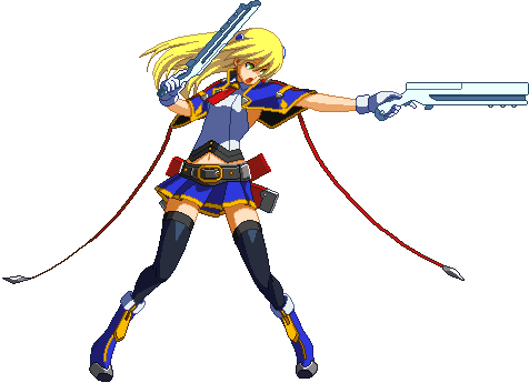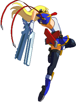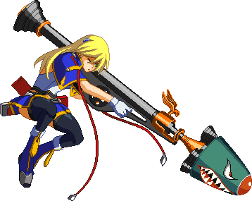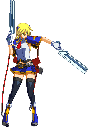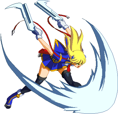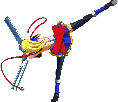 Advances while shooting her gun. Resembles old BlazBlue: Calamity Trigger Drive 6A. No longer jump cancelable as of BlazBlue: Continuum Shift II. Projectile property.