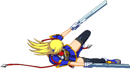 Slides forward, then sweeps low. Faster startup compared to BlazBlue: Calamity Trigger. Knocks down on hit. Now has upper-body invulnerability from frame 1.