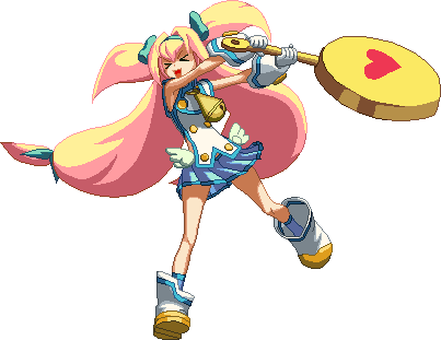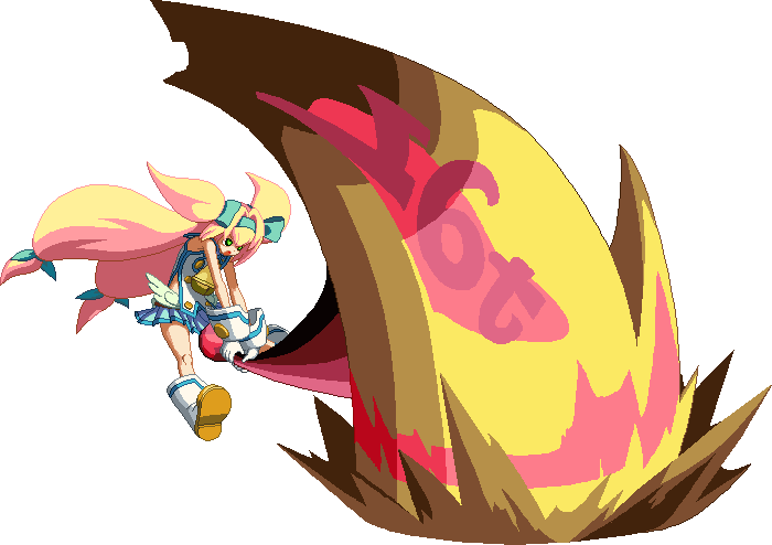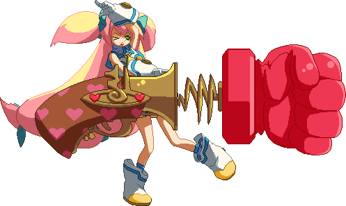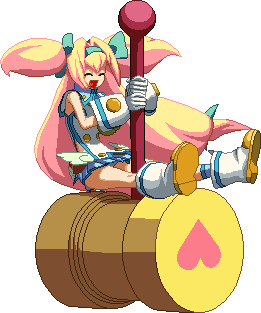 A close-ranged but powerful hammer. Knocks down. Does heavy damage, but can’t combo afterwards. Used for ending combos. Break 2 Guard Primers on block.