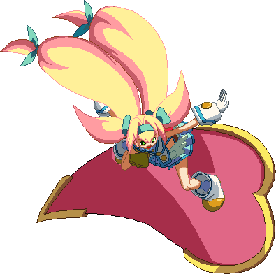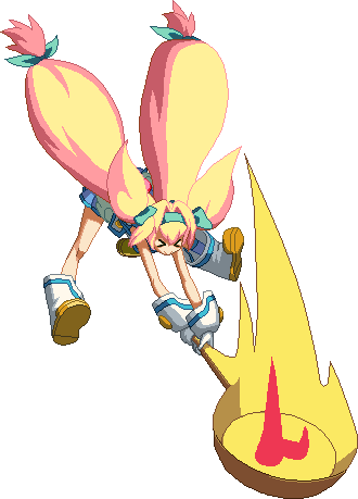 Strikes the opponent with a flying surfboard attack. Breaks one Guard Primer on block. Enduces groundslide on Counterhit. If used in the corner, Platinum can combo after it.