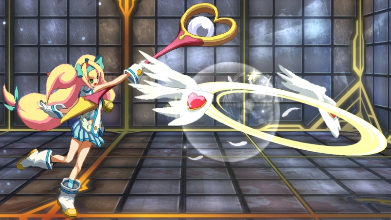 Platinum the Trinity is a fairly easy character to pick up and play. She is a good all-around character whose claim to fame is her high-damaging, simple combos. She can also play defensively using her Drive attacks, a handful of which act as projectiles to zone opponents from mid-to-long range. Platinum can be summed up best as a character with a lot of variety.