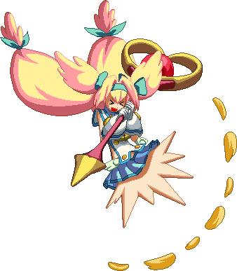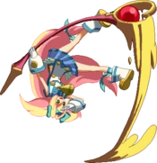 Swings rod around in a tornado fashion. Starts slow, then speeds up. If the attack lands, charges of the equipped Magical Weapon will regenerate. If a Magical Weapon is not equipped, one will be summoned. Easily juggles the opponent.