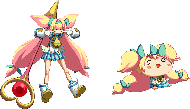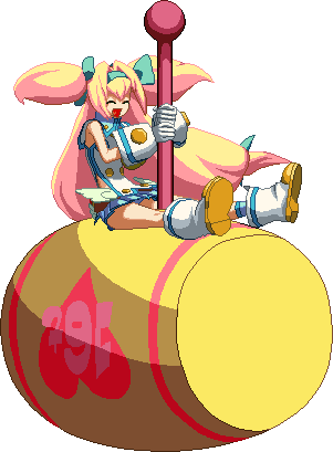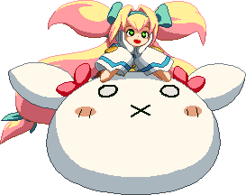 New to BlazBlue: Chronophantasma. Tosses three presents in an arc. When the opponent gets close to them, little faces pop out on a spring as a trap.