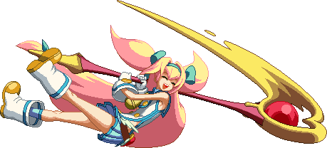 Side swipe with staff Long reach, seemingly her best poke. Hits mid. In Extend, it had its speed increased as well as its forward movement distance.