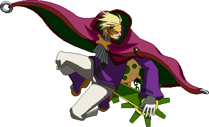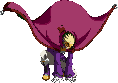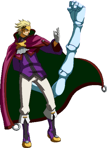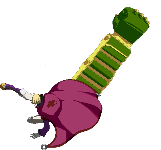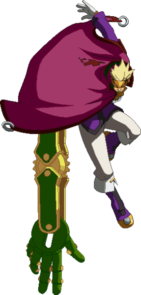 A puppet-like hand comes out of Relius’ mantle and punches from above in a downward take-down hook. Can be used for cross-ups and is a strong air-to-ground poke, but not that good for air-to-air however.