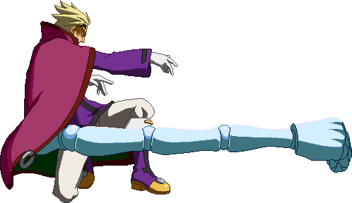 A puppet-like hand comes out of Relius’ mantle from behind and punches forward. Decent reach and speed. Cannot be jump canceled, but is a basic combo starter as one of his main pokes.