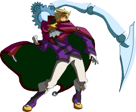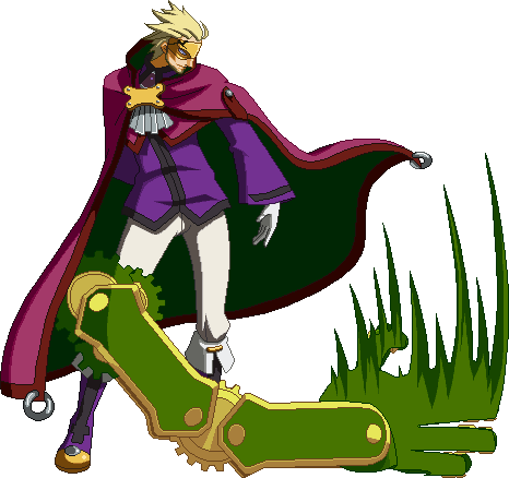 New move in BlazBlue: Chronophantasma. Relius makes a large switchblade mechanism attached to a green mecha-arm pop out from his mantle to slash at his foe and pull them in. Has a long amount of reach, and vacuums the foe. It makes use as either a long range poke or better, a combo extender without the use of Ignis. However, it comes out a bit slow, so it can be very easily blocked despite its frame advantage, as well as easy to punish if instant blocked. Can Fatal Counter.