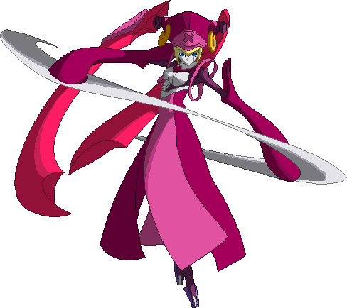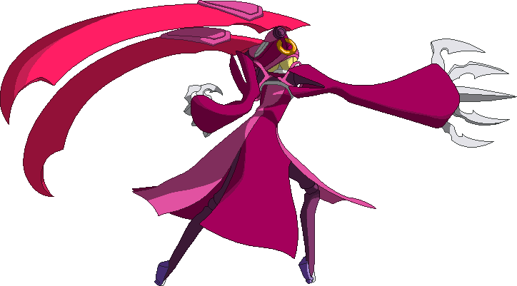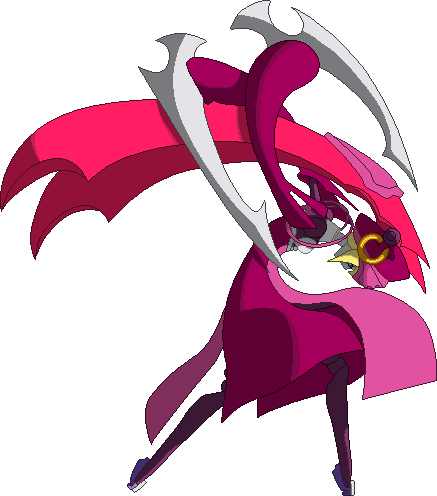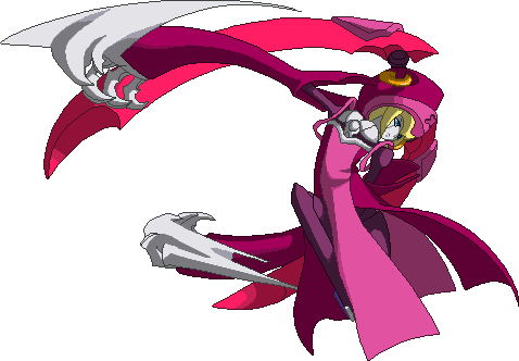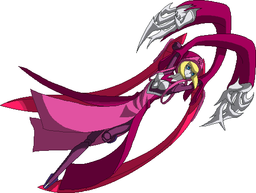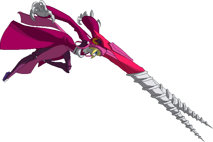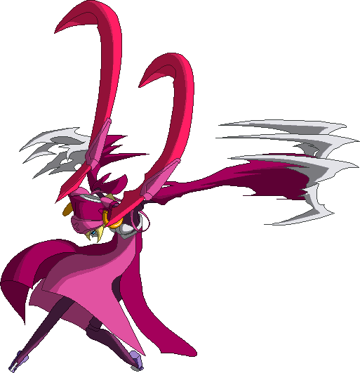 A mantis-like hand appears at Relius’ back and stabs down on the opponent. Relius’ only normal overhead. Good range, but slow. Pulls opponent in a little on hit.
