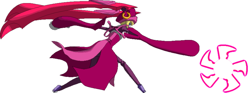 Can only be used while Ignis is summoned. Swings her following arm back then bends back and away from the foe, thrusting at them twice with an energy spike from her "ribbon". It has no same move proration. Can be used to make some pressure strings. Uses 2000 points of Ignis’ gauge.