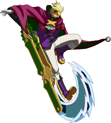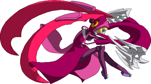 Relius spins around while temporarily being in a state of invincibility, almost like a matador (in a taunt-like way). Though it is completely invincible during its active frame it also has a long startup which makes it unconvenient to use as a reversal. It can also dodge projectiles. No matter if you cannot predict whether Relius will be hit or if he will evade the opponent’s attack, It can also be used to provoke the opponent while Ignis is on screen rushing towards him. Ignis can be used simultaneously with this attack (specially its 6D), or Relius can use this during any form of momentum that brings him and his opponent close to each other in order to make himself transparent, and thus phase through the opponent to possibly cross them up. It is one of the only two (or four as of CP) command moves that Relius does not uses Ignis.