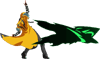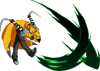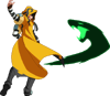 Kicks to the background with his following leg as if he was kicking sand, only with an energy snake trailing it. Jump and special cancelable. Nullifies projectiles.