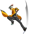 In BlazBlue: Centralfiction, Terumi receives an overhead attack, Falling Stabbing Fang (墜衝牙,Tsuishōga, localized as Agonizing Fang).