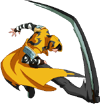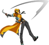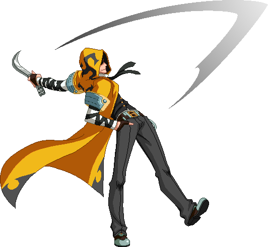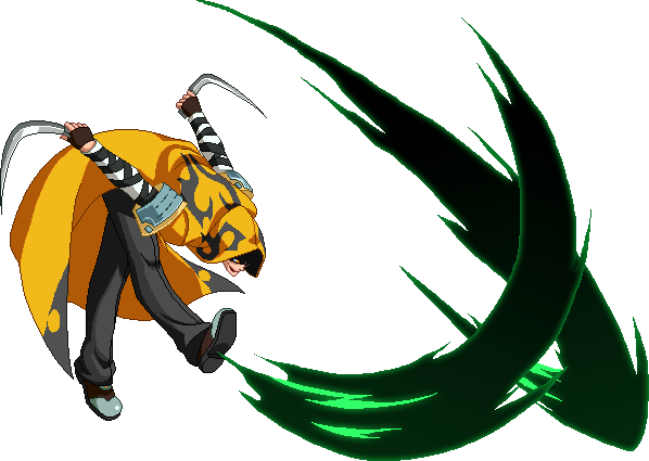 Spins wildly in midair with both knives in complex slashing. Looks similar to Hazama’s j.C, but only deals 3 hits, and C must be pressed only once. Last hit deals more hitstun than others.