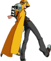Yūki Terumi is perhaps one of the more intimidating characters in the game, his Drive is a literal force to be reckoned with. Force Eater (フォースイーター,Fōsu Ītā) gives Terumi a phenomenal amount of Heat gain whenever it hits, meaning Terumi has an unparalleled amount of access to Distortion Drives and Rapid Cancels. Something Terumi players should always remember is the access to his command grab, Fang Piercing Stab (牙穿衝,Gasenshō, localized as Retaliating Fang), as this grab gives an amazing amount of Heat gain and has a hefty amount of range for a grab. Terumi is also relentlessly fast, being able to catch up to his opponents whenever. Not only that, his combos tend to be quite full of hits; unlike Hazama, most of Terumi’s moves do low damage but last long, since he relishes his opponents’ suffering by not really making them die too soon just yet. He may not end matches quickly, but his combos tend to be the most rewarding out of the cast, even more than previous incarnations of his Hazama counterpart.