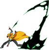 Terumi dashes forward with his hand extended. If the dash connects, he flings his opponent into the air with a brief vortex darkness before dragging them back down to the ground. Can be super canceled, but has very heavy proration with its most early uses in many combos.
